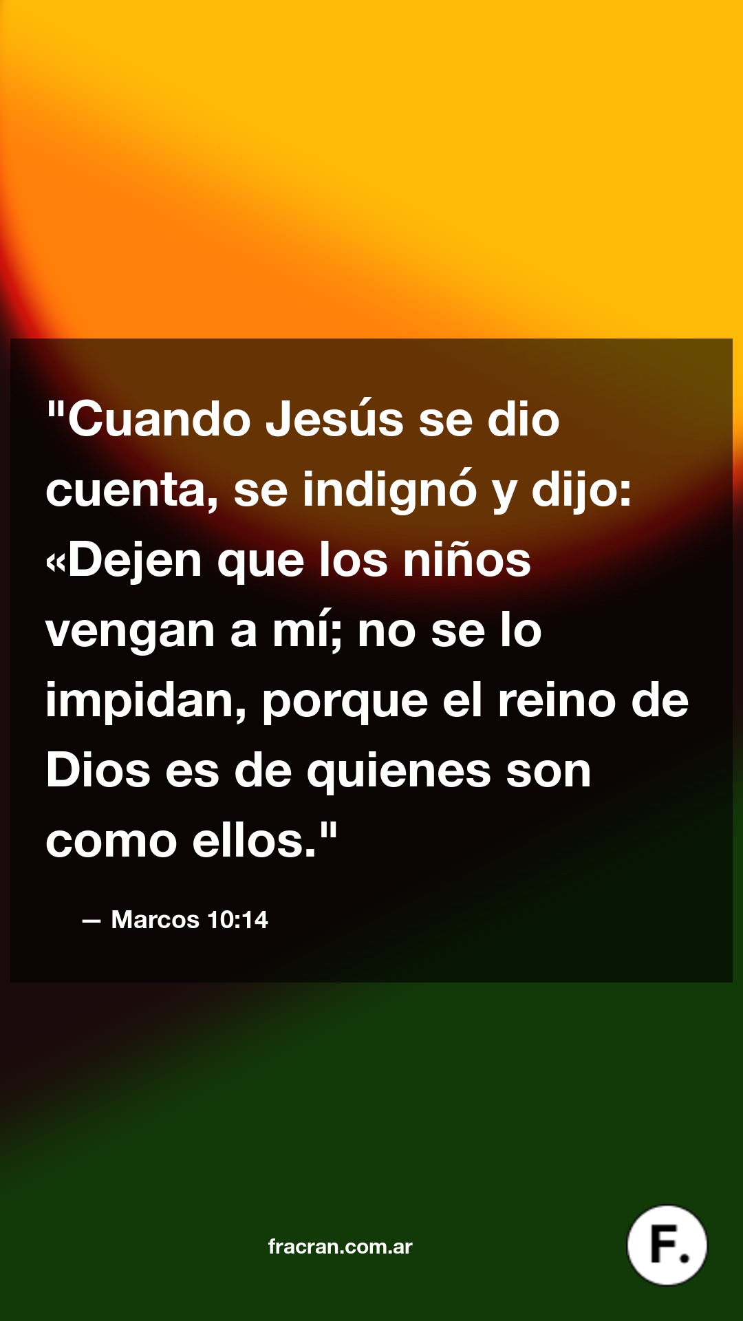 Cuando Jesús se dio cuenta, se indignó y dijo: «Dejen que los niños vengan a mí; no se lo impidan, porque el reino de Dios es de quienes son como ellos.