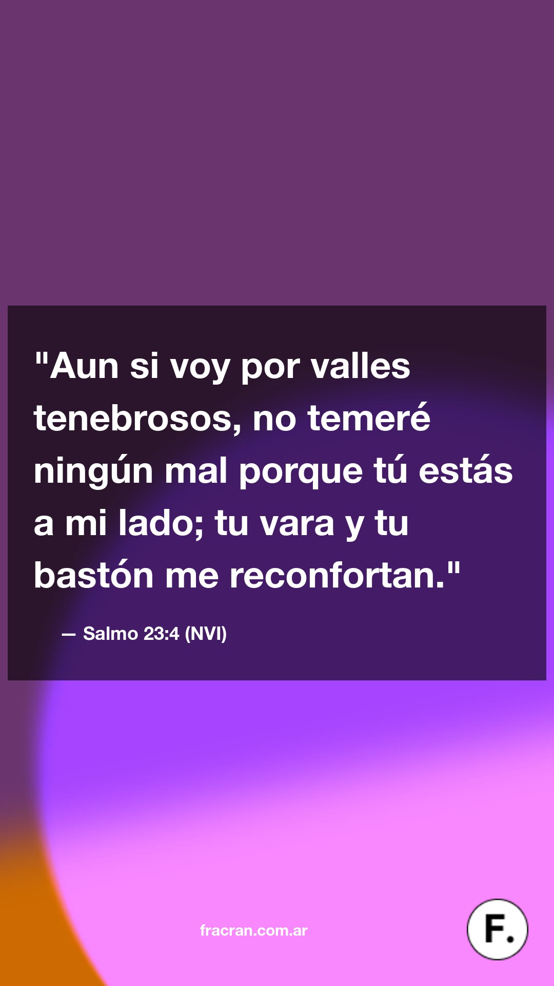 Aun si voy por valles tenebrosos, no temeré ningún mal porque tú estás a mi lado; tu vara y tu bastón me reconfortan.