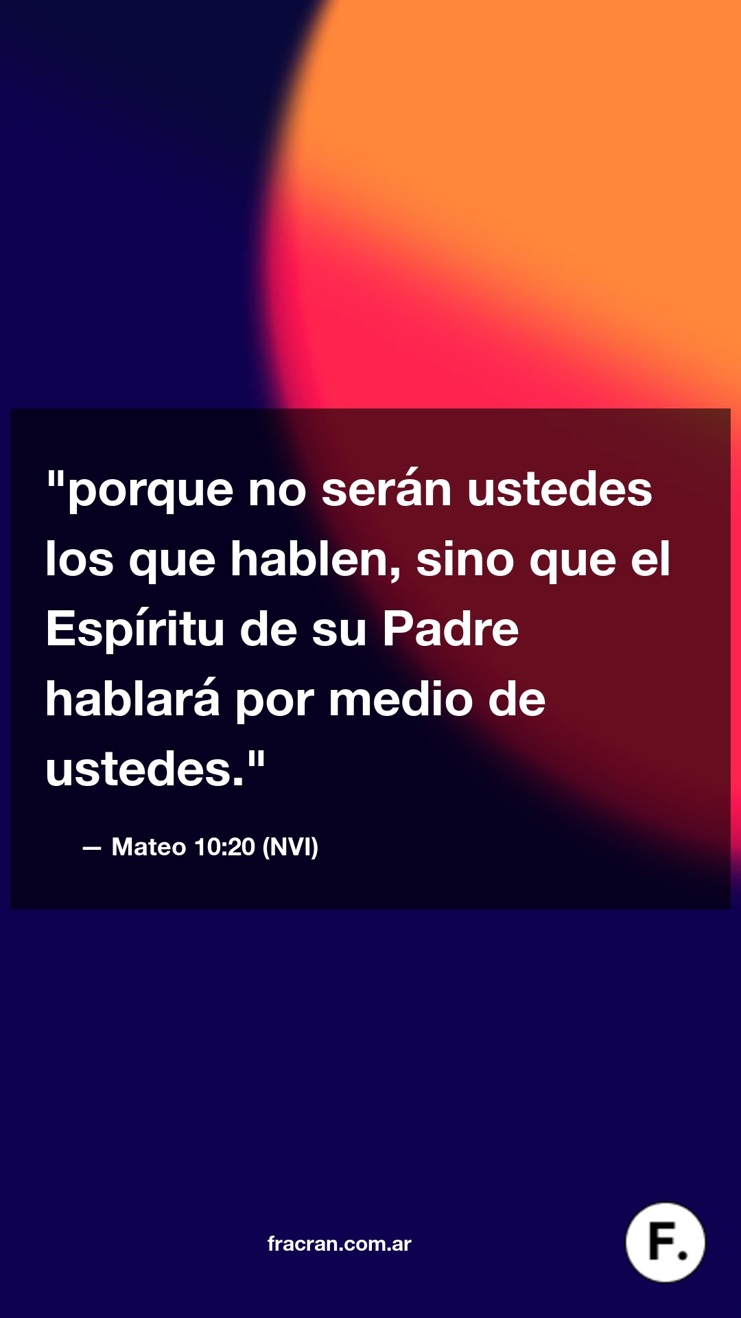 porque no serán ustedes los que hablen, sino que el Espíritu de su Padre hablará por medio de ustedes.