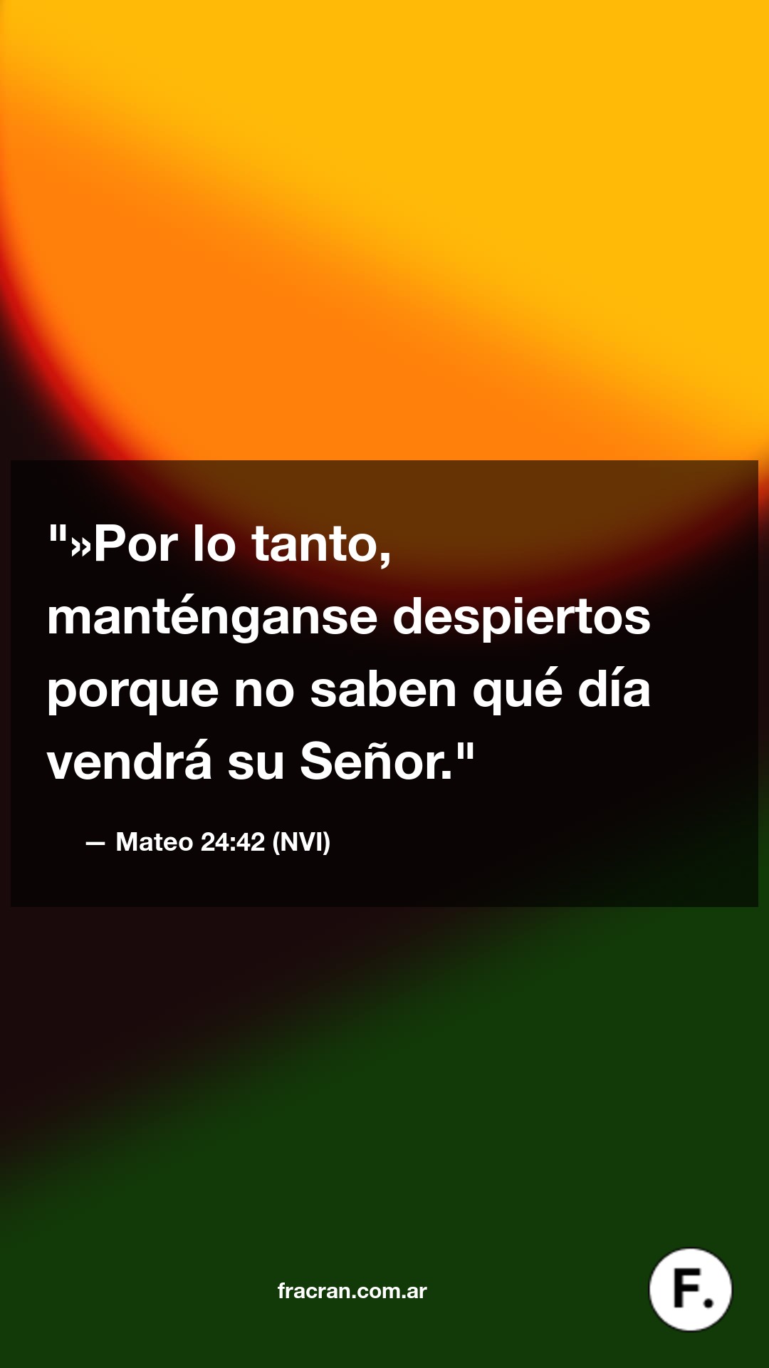 »Por lo tanto, manténganse despiertos porque no saben qué día vendrá su Señor.