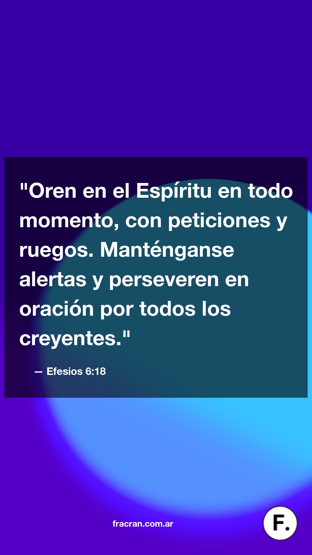 "Oren en el Espíritu en todo momento, con peticiones y ruegos. Manténganse alertas y perseveren en oración por todos los creyentes."