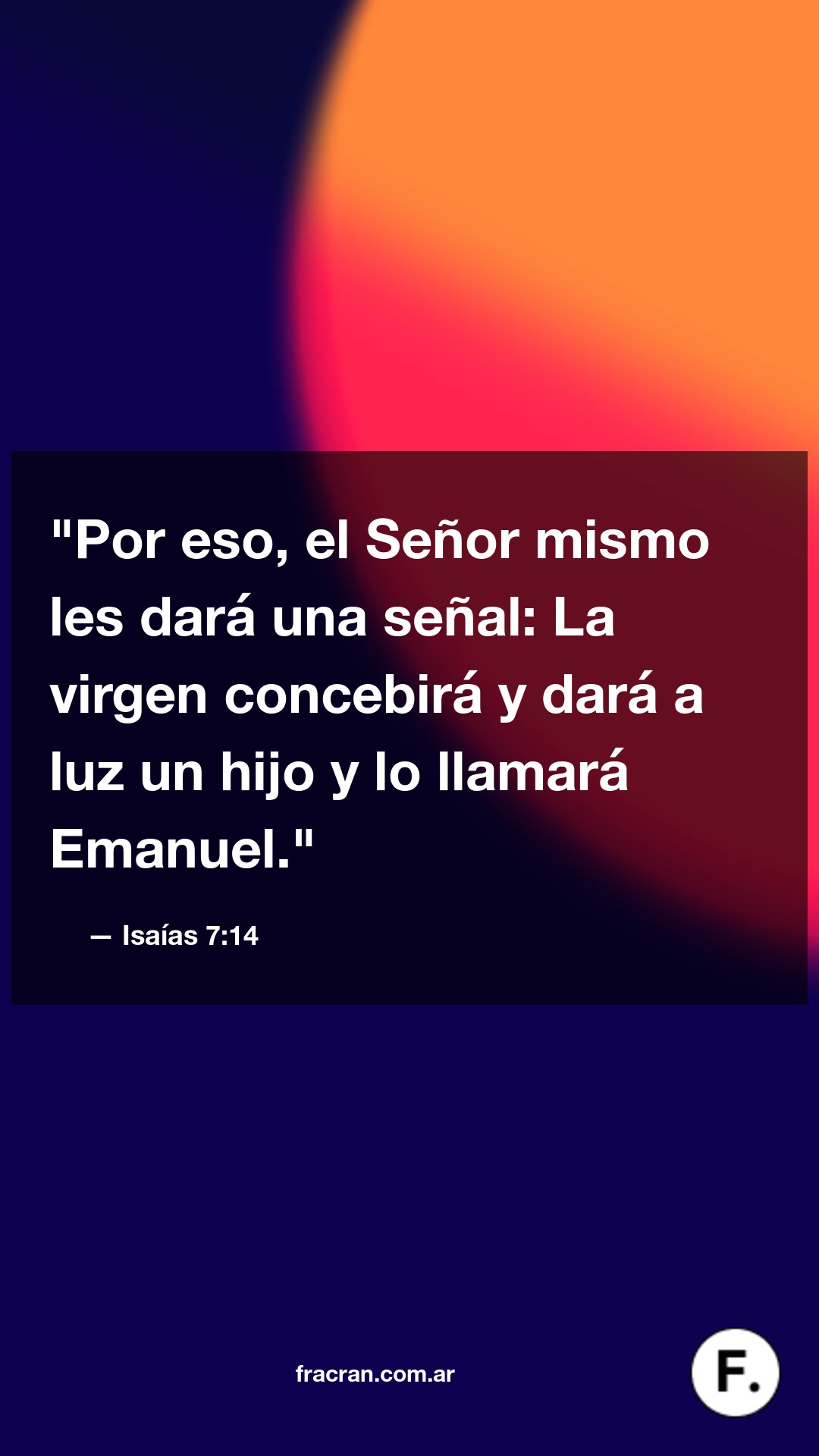 "Por eso, el Señor mismo les dará una señal: La virgen concebirá y dará a luz un hijo y lo llamará Emanuel."