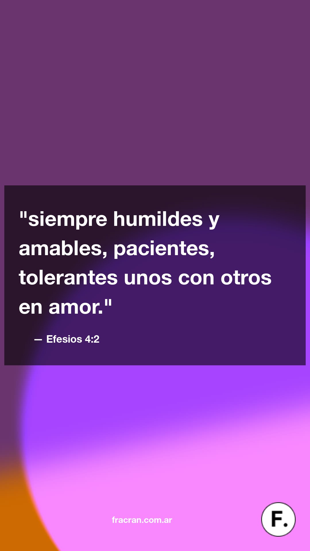 siempre humildes y amables, pacientes, tolerantes unos con otros en amor.