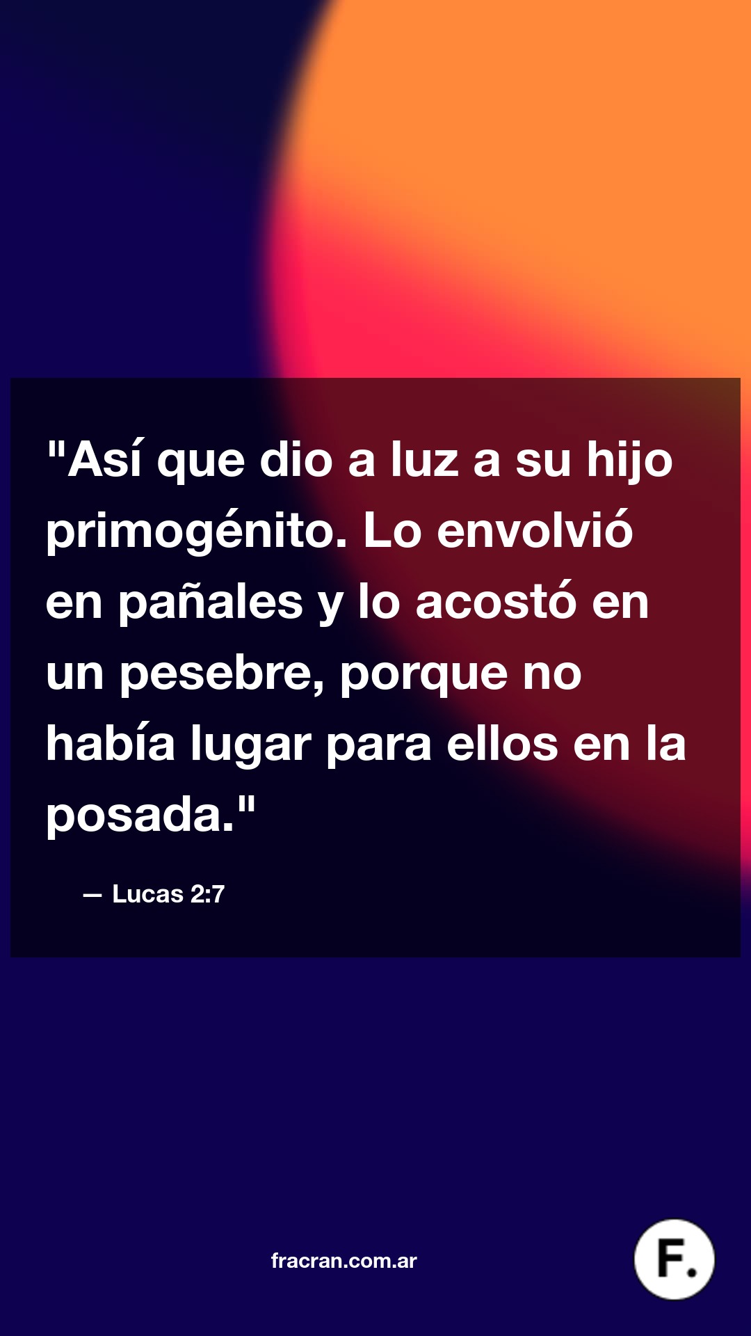 Así que dio a luz a su hijo primogénito. Lo envolvió en pañales y lo acostó en un pesebre, porque no había lugar para ellos en la posada.