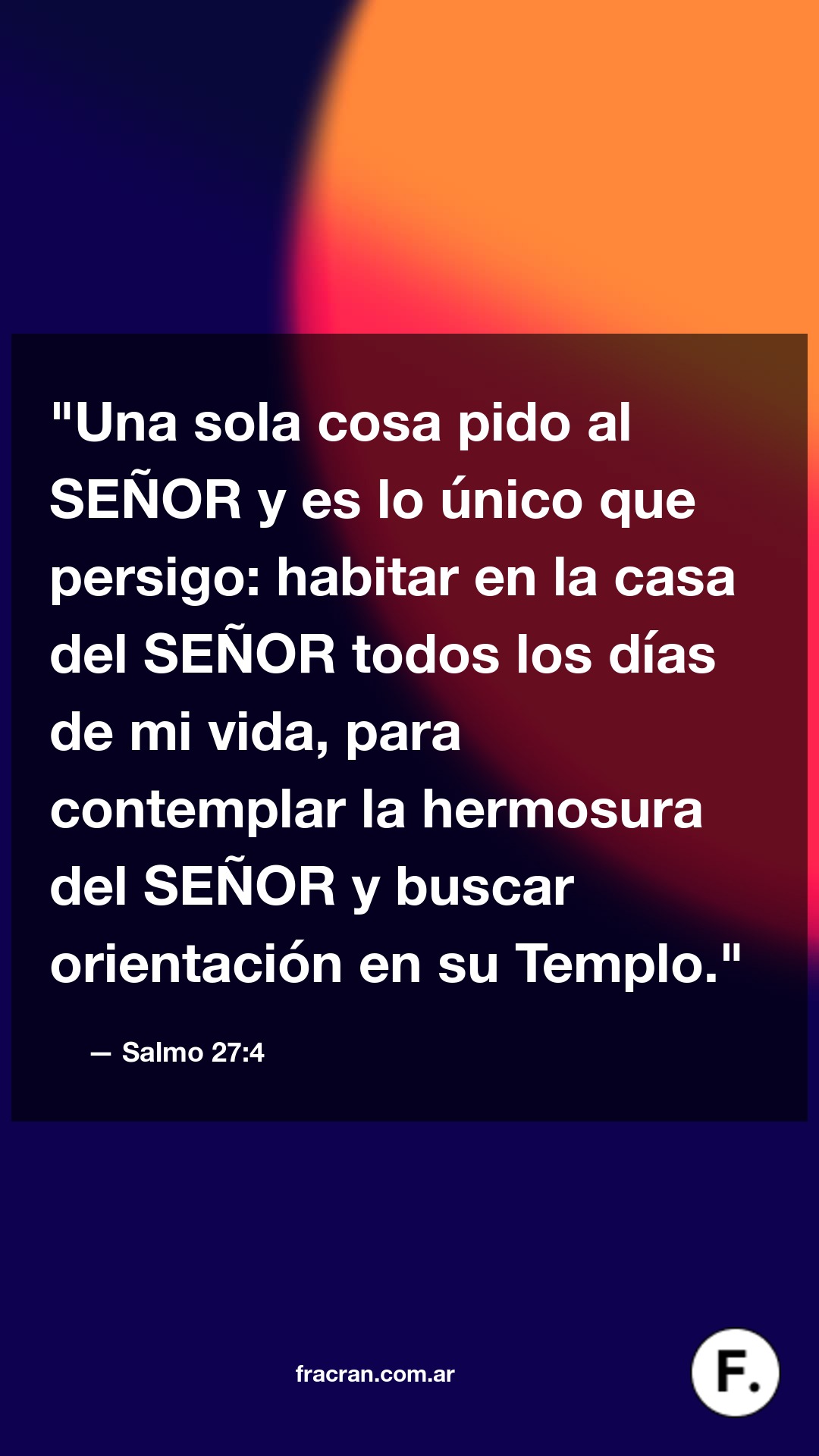 "Una sola cosa pido al SEÑOR y es lo único que persigo: habitar en la casa del SEÑOR todos los días de mi vida, para contemplar la hermosura del SEÑOR y buscar orientación en su Templo."