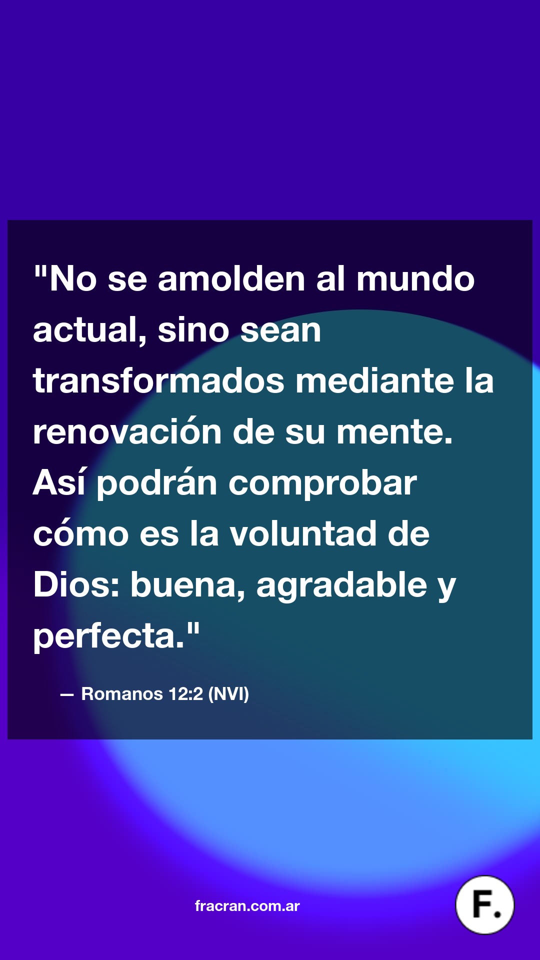 No se amolden al mundo actual, sino sean transformados mediante la renovación de su mente. Así podrán comprobar cómo es la voluntad de Dios: buena, agradable y perfecta.