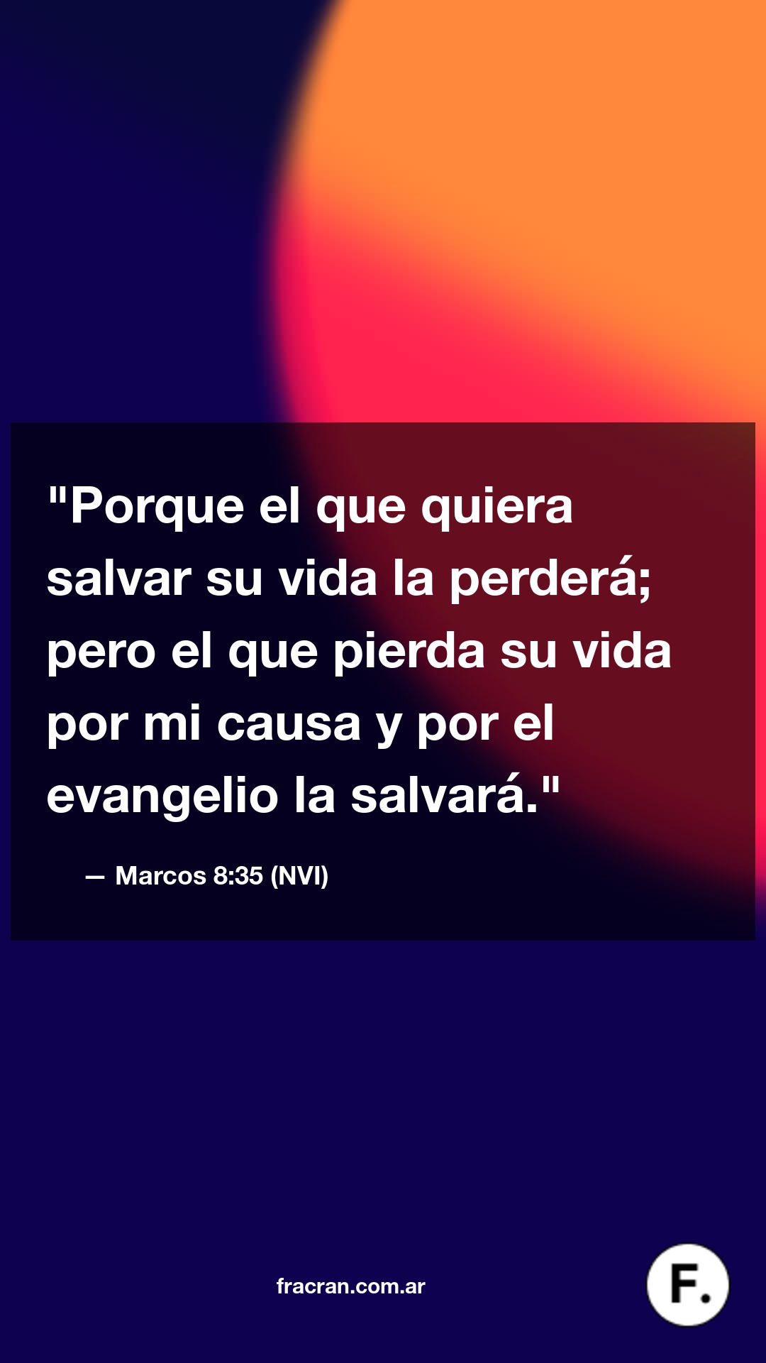 Porque el que quiera salvar su vida la perderá; pero el que pierda su vida por mi causa y por el evangelio la salvará.