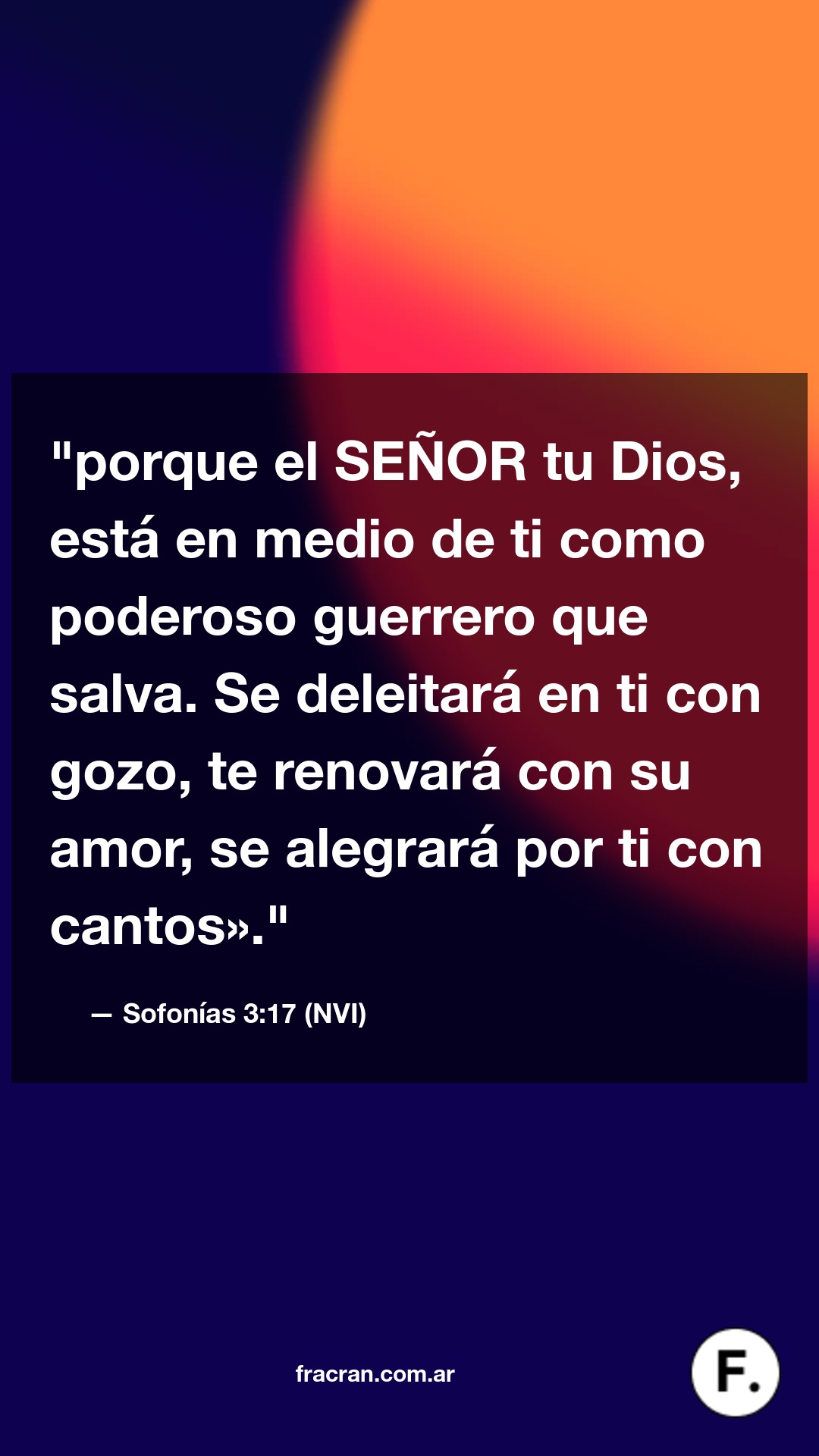 porque el SEÑOR tu Dios, está en medio de ti como poderoso guerrero que salva. Se deleitará en ti con gozo, te renovará con su amor, se alegrará por ti con cantos»