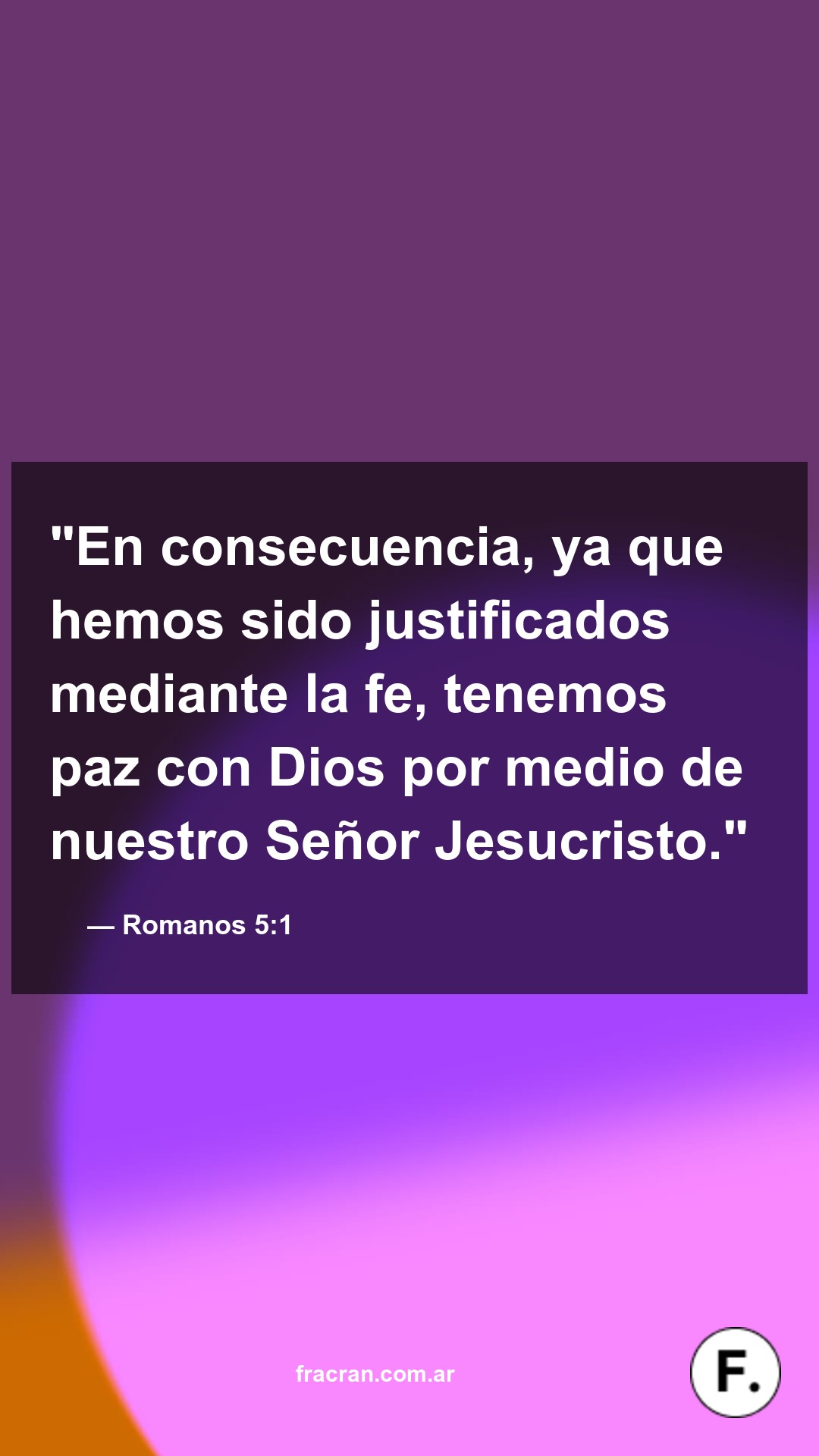 "En consecuencia, ya que hemos sido justificados mediante la fe, tenemos paz con Dios por medio de nuestro Señor Jesucristo."